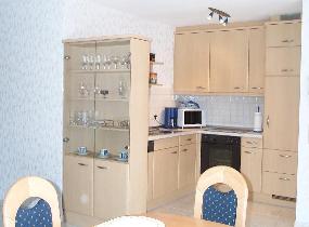komplett eingerichtete Küche mit Spülmaschine, Mikrowellenherd,